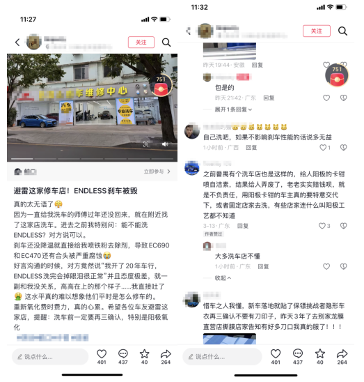 · “避雷这家修车店!ENDLESS刹车被毁”;